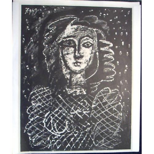 This Pablo Picasso Lithograph is entitled Buste au fond etoile. It is 17 x 20 inches and printed on heavy stock paper. I have owned this print since the 60's or 70's but have never framed it. It has been stored in a smoke free environment and is in great condition. The back of the print shows the following: 713 Pablo Picasso. Buste au fond etoile. Lithographie 1949 c 1968 Buchheim-Verlag, Feldafing. Printed in Germany Reproduktionsrechte Cosmopress Genf