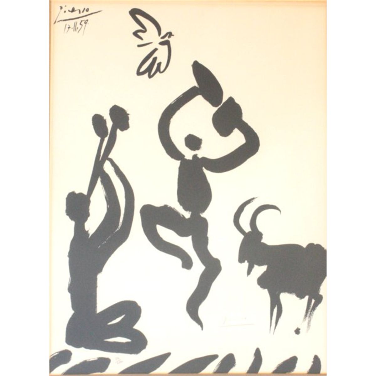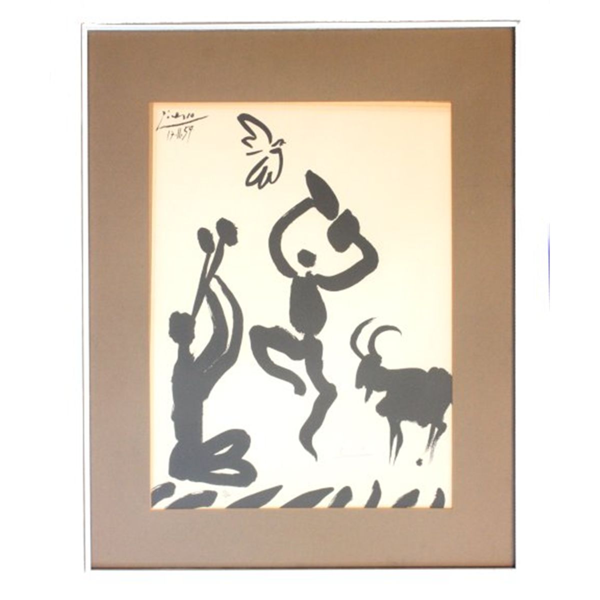 Pablo Picasso (1881-1973 Spain/France) Dancer,  Flutist, Ram black and white lithograph, signed  and dated in the plate '59, pencil signed and  numbered 86/200, 24 1/2" x 19" sight size, framed  33" x 28"