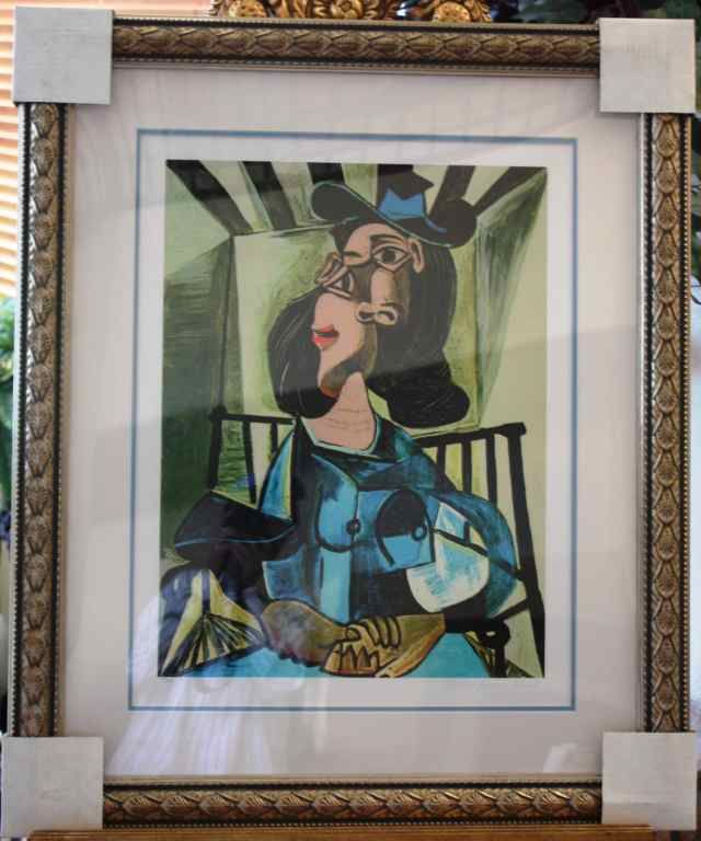 Pablo Picasso - "Woman With Hat Seated In An Armchair"- Ltd Edition Lithograph - Professionally Framed And Matted - Mint Condition - Comes With Coa - Estate Signed With Seal - Framed Size Appx 33 1/2 X 28