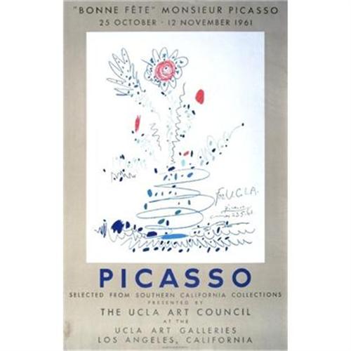 Notes:Original lithograph in color made for the UCLA Art Council at the UCLA Art galleries University of California in 1961 to celebrate Picasso's birthday. 2500 copies with text aand 100 copies were signed by the artist. Printed by Mourlot in Paris. The lithograph measures 39 x 25 inches. Reference: Rodrigo, Vol. I, #115, pg. 258.