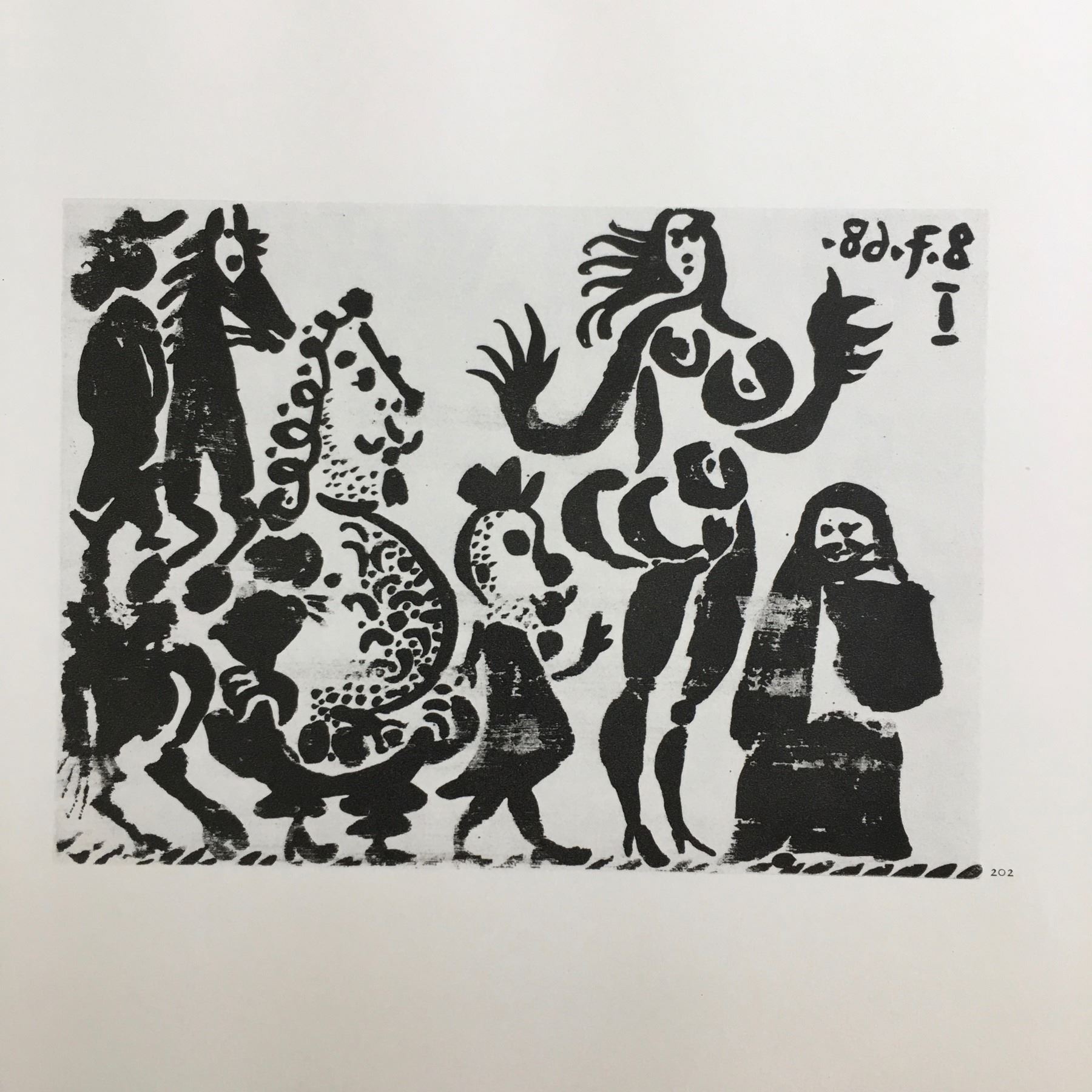 [Art] Pablo Picasso 347, Maecenas Press, 2 Volumes Picasso, Pablo. PICASSO 347. New York: Maecenas Press (Random House), 1970. First Edition. 2 Volumes, oblong 16 1/2 by 11 5/8 inches in the original gilt-stamped woven black cloth with woven cloth spines. Produced in conjunction with an exhibition of 347 gravures produced for Picasso by the Crommelynck Brothers in Mougins after the artist's intaglios. from Cowans