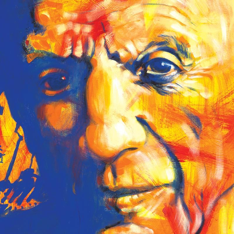 With bright colors and expressive lines, Stephen Fishwick puts a unique spin on pop culture portraits. "Picasso" is a limited edition giclee on stretched canvas, numbered and bears the artist's authorized signature. This piece comes gallery wrapped and ready to hang! Includes Certificate of Authenticity! Measures approx. 16" x 20" (image).