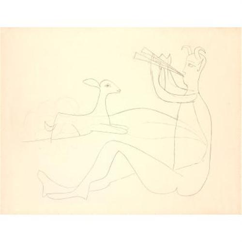 Notes:We are selling one of sixteen lithographs by Picasso from a portfolio titled Mes Dessins D'Antibes (My Antibes Drawings).This item titled Mes Dessins d'Antibes is a first edition lithograph, from an edition of 350. The sixteen (16) lithographic facsimiles were printed in black by Daniel Jacomet after drawings by Pablo Picasso that were created while Picasso was in Antibes in 1946. The lithograph is printed on Arches paper and meeasures 19 3/4 x 25 1/2 inches. It is in mint condition, never framed and stored flat away from sunlight. Certificate provided upon request.About the Portfolio The portfolio was published both in a French version in Paris and an American version in English in New York by Daniel Jacomet for the Galerie Chalette in 1958. The complete portfolio had two title leaves (one of them a lithographic facsimile of Picasso's manuscript in red), two leaves with text in English and French, a justification leaf and sixteen (16) lithographic facsimiles printed in black by Daniel Jacomet after drawings by Pablo Picasso. created at Antibes in 1946. The portfolio is very rare in complete state.