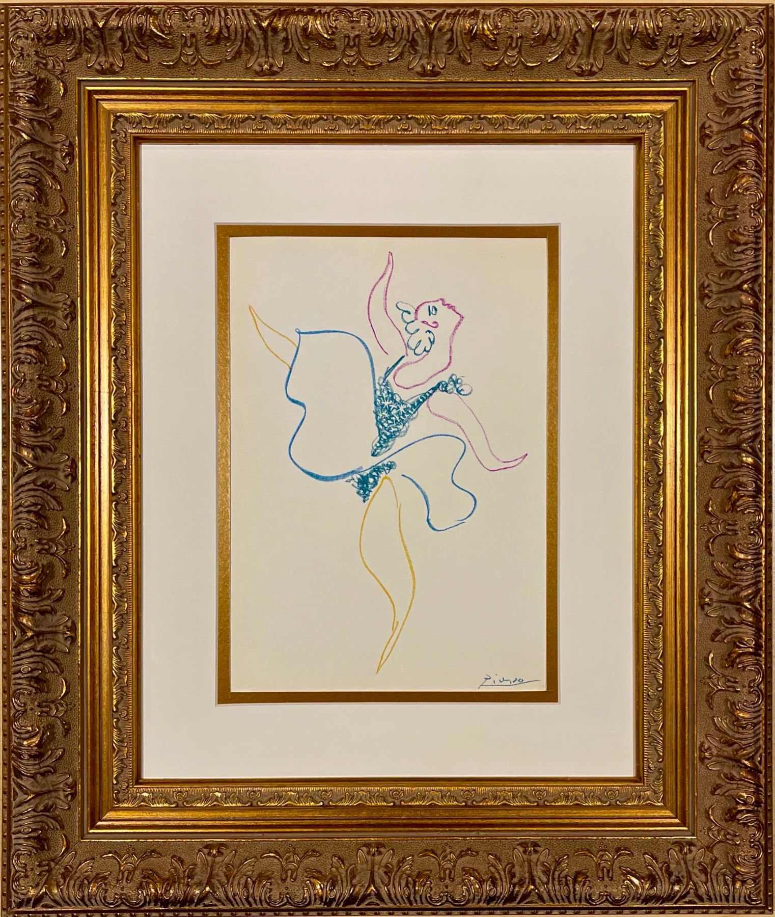 Pablo Picasso (1881-1973) Original color lithograph on paper, "Le Ballet." Rare limited edition, Paris, 1954. Signed in the plate, bottom right corner 'Picasso.' Sheet 12.5 - 8.5 inches, new frame 23.5 x 20 inches. Sheet in excellent condition, the frame is new. COA provided.