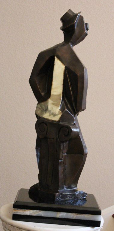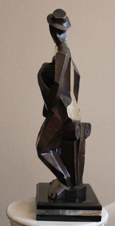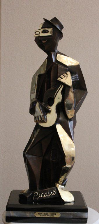 Pablo Picasso's - "Man With Guitar" Original Limited Edition Bronze Sculpture - - Facsimile Signed "Picasso" Inspired By The Painting By Pablo Picasso - Limited Edition Of 100 - Lost Wax Cast - Magnificent Patina - Mounted On Marble Base -27.5"H X 11"W X 8.5"D - Signed By The Sculptor "Castano" W/ Copyright Stamp And Date