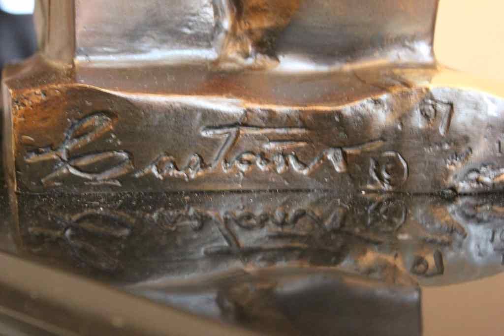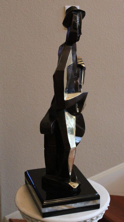 Pablo Picasso's - "Man With Guitar" Original Castano Limited Edition Bronze Sculpture - Inspired By The Painting By Pablo Picasso - Limited Edition Of 100 - Lost Wax Cast - Magnificent Patina - Mounted On Marble Base -27.5"H X 11"W X 8.5"D - Signed By The Sculptor "Castano" W/ Copyright Stamp And Date