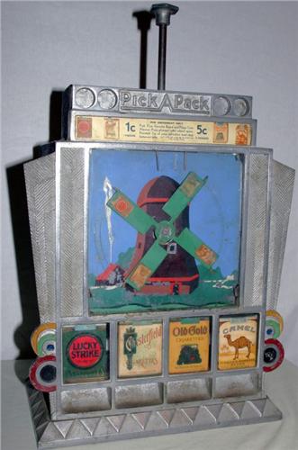 Pick-a-Pack trade stimulator works on a penny or nickel to dispense one or five packs of gum. Wind Mill turns and must land between two tabs to determine brand choice. Excellent original condition.