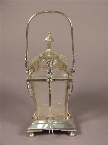Pickle Caster, unusual etched glass in silver plated holder. No chips or cracks. 10 inches tall.
