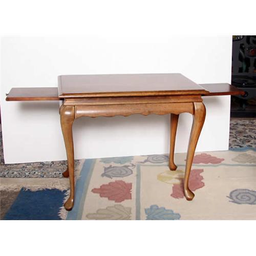 Description: Queen Anne Style Pickled Wood Sofa Table with Sliding Coasters.