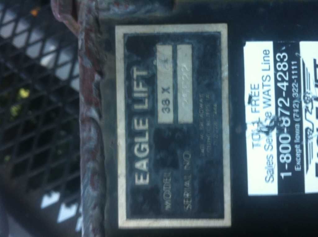 Eagle lift. Model 38X. Consigner notes that this was removed from a truck he sold 1-1/2 years ago and was operational when removed. Also new ram 2 yrs ago.