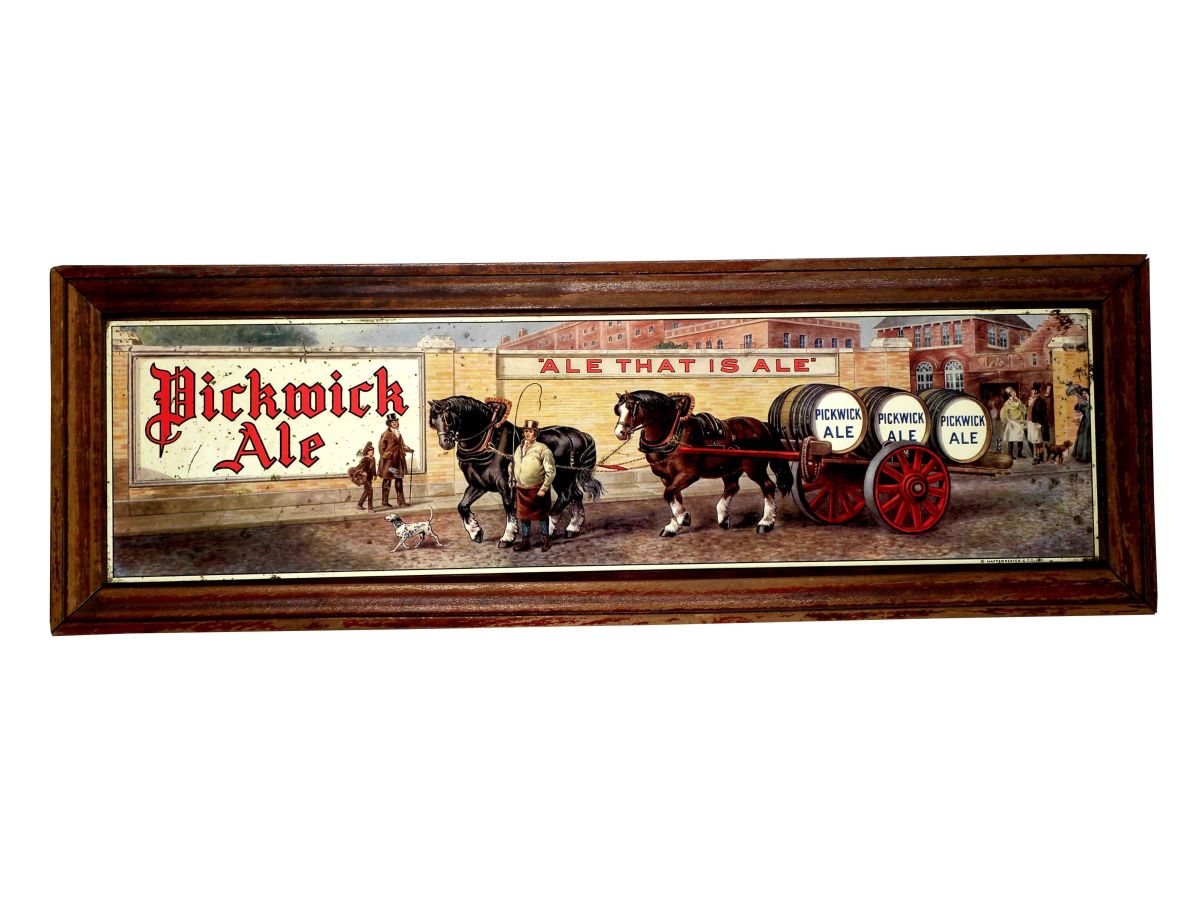 Pickwick Ale Tin Sign. Entitled, "Ale that is Ale". Scratches and rust spots throughout otherwise good condition. 24 3/4 X 8 1/4 inches overall.