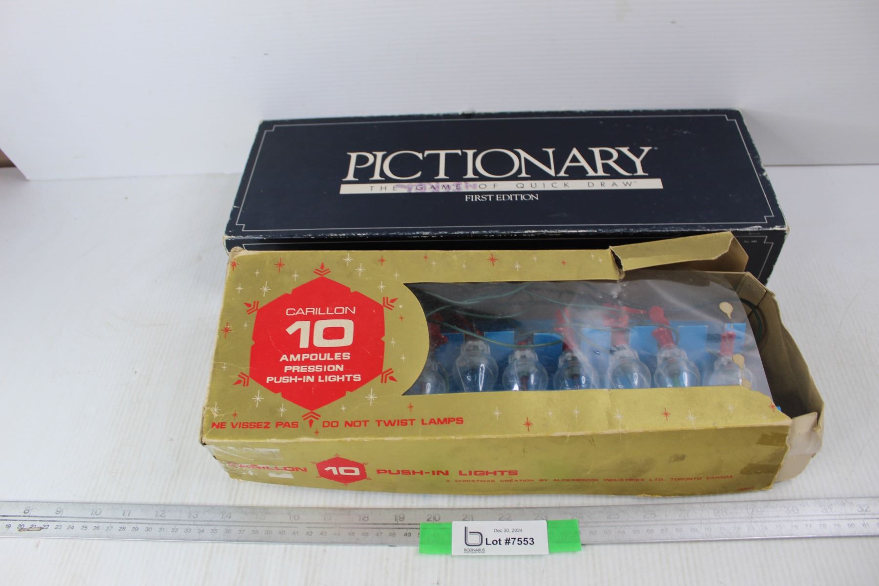 Pictionary First Edition Board Game, package Of 10 C Carillion Push- In Christmas Lights- As Is