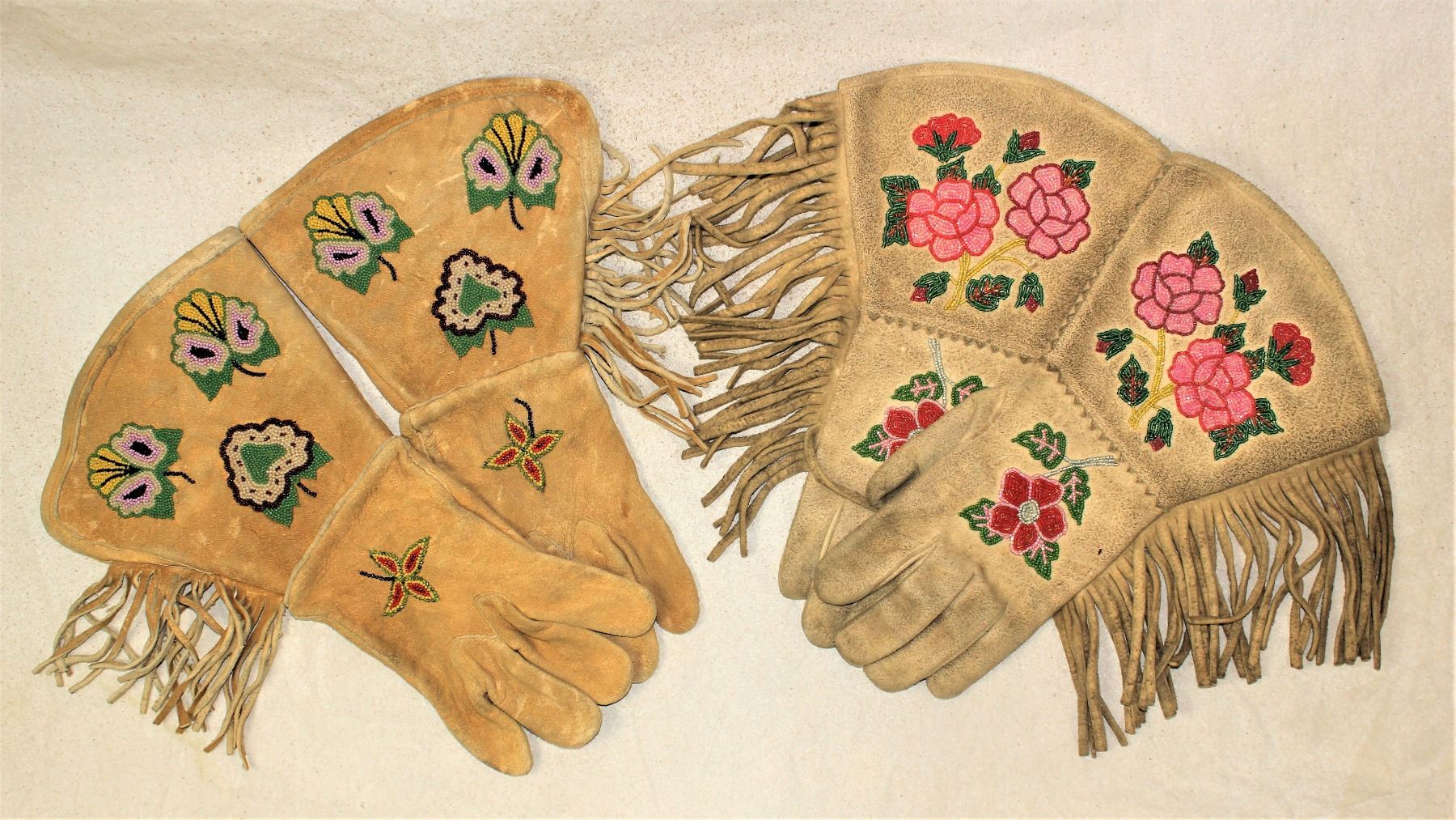 A grouping of two pair of attractive Native American gauntlets with pictorial beaded designs.