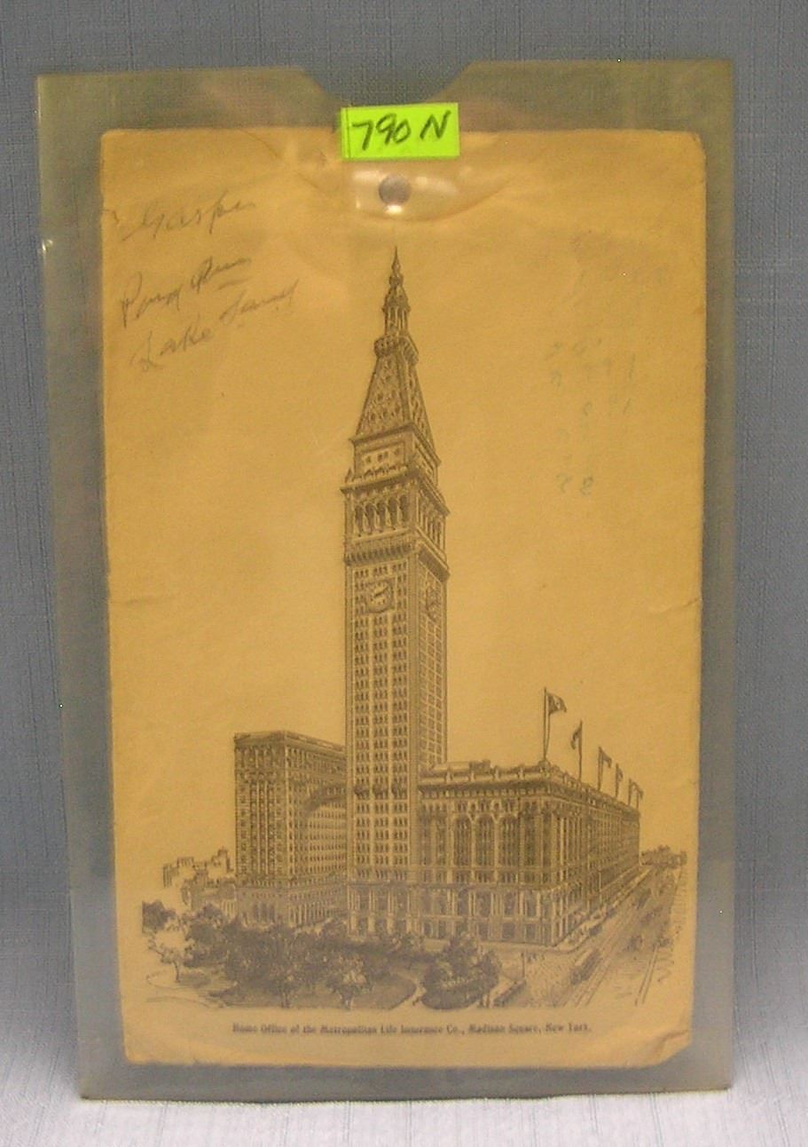 Vintage Pictorial Metropolitan Life insurance company headquarters building. insurance information envelope dated 1922 located at Madison square NY.est. value $125.00-$150.00