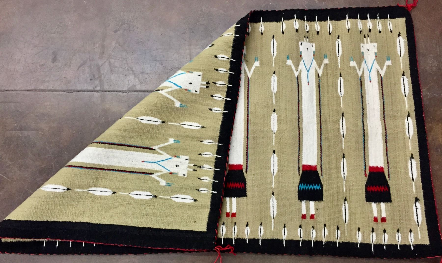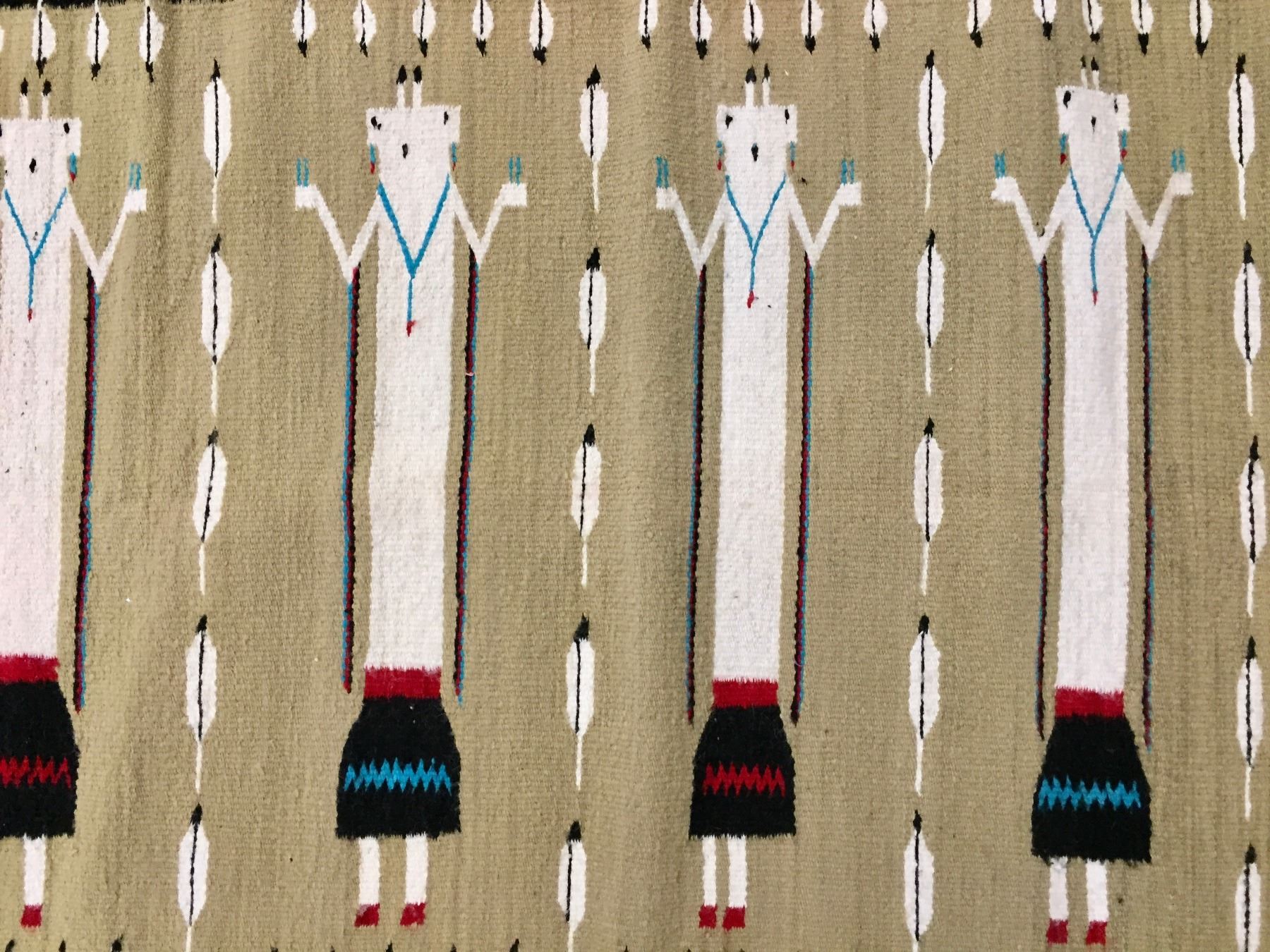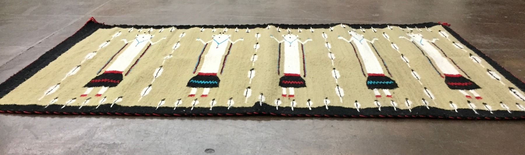 Description: For sale in this lot is a vintage Navajo Pictorial Textile featuring multi-colors throughout the textile. Maker: Unknown Navajo weaver.