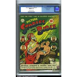 Picture Stories from the Bible #3 Old Testament Edition Gaines File pedigree (EC, 1943). An outstanding copy of this hard-to-find issue. If you want the best, here it is! A perfect book in every way, and a joy to own just for the grade. CGC NM/MT 9.8 Off-white to white pages. Overstreet 2001 NM 9.4 value = $190. Important notice: We expect to be auctioning lots at the rate of 200-250 per hour. Sometimes eBay Premier live bid software cannot keep up with that pace, so we strongly recommend that you place a realistic proxy bid now as insurance to avoid disappointment. Also please note that all Heritage/CAA lots purchased through eBay Premier carry a 20% Buyer's Premium.