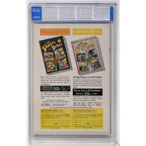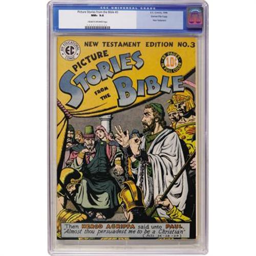 <B>Picture Stories from the Bible - New Testament Edition No. 3 Gaines File pedigree (EC, 1946) CGC NM+ 9.6 Cream to off-white pages.</B></I> That it's from the Gaines Files goes without saying -- just check out this grade! CGC has certified this as from the famed Gaines Files, but a certificate does not accompany the book. Overstreet 2007 NM- 9.2 value = $220. CGC census 6/07: 3 in 9.6, 1 higher.<BR><BR><b>Shipping:</b> Comics - Slabbed (certified) (<a target="_blank" href="http://www.heritageauctions.com/common/shipping.php">view shipping information</a>)