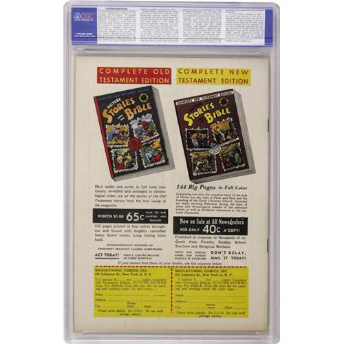 <B>Picture Stories from the Bible - Old Testament Edition #2 Gaines File pedigree 4/12 (EC, 1946) CGC NM 9.4 Off-white pages.</B></I> This is the fare that EC (Educational Comics) was founded to produce! Only one copy of this issue has been graded higher by CGC to date. Overstreet 2006 NM- 9.2 value = $215. CGC census 12/06: 1 in 9.4, 1 higher.<BR><BR><b>Shipping:</b> Slabbed Comic (<a target="_blank" href="http://www.heritageauctions.com/common/shipping.php">view shipping information</a>)