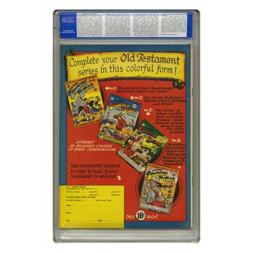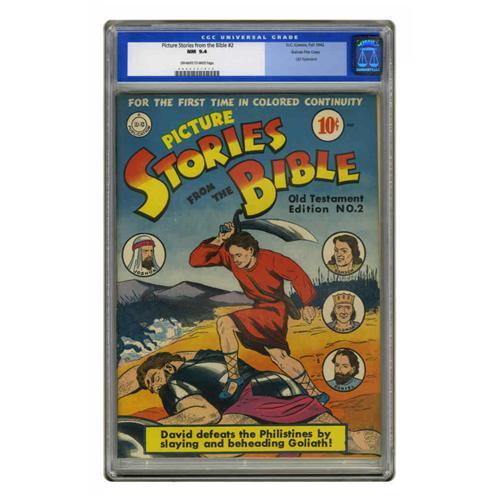 <B>Picture Stories from the Bible Old Testament Edition #2 Gaines File pedigree 4/12 (DC, 1942) CGC NM 9.4 Off-white to white pages.</B></I> The unusual situation of having a Gaines File Copy of a DC comic comes into play here. Don Cameron provided cover and interior art for the issue. Overstreet 2005 NM- 9.2 value = $270. CGC census 11/05: 2 in 9.4, none higher.