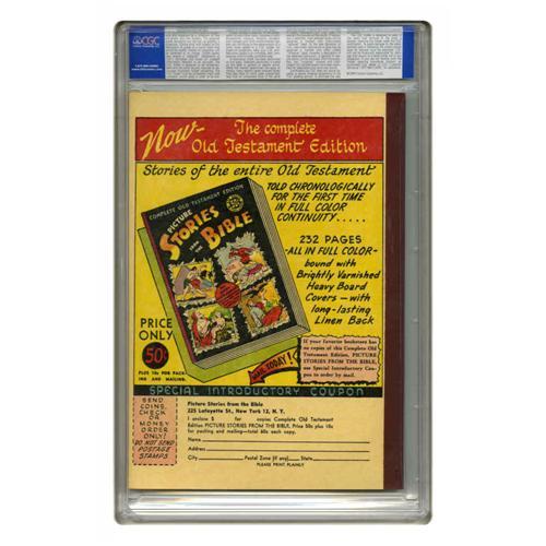<B>Picture Stories from the Bible #nn Complete Life of Christ - Gaines File pedigree (EC, 1945) CGC NM+ 9.6 Cream to off-white pages.</B></I> This 96-pager collected issues #1 and 2 of the New Testament Edition. Note that while CGC has certified this book as a Gaines File Copy, no certificate accompanies this lot. Overstreet 2005 NM- 9.2 value = $310. CGC census 12/05: 1 in 9.6, 1 higher.