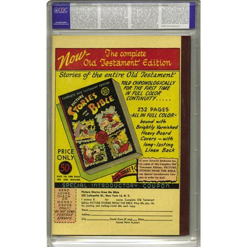 <B>Picture Stories from the Bible #nn Complete Life of Christ - Gaines File pedigree (EC, 1945) CGC NM+ 9.6 Cream to off-white pages.</B></I> This 96-pager collected issues #1 and 2 of the New Testament Edition. Note that while CGC has certified this book as a Gaines File Copy, no certificate accompanies this lot. Overstreet 2006 NM- 9.2 value = $325. CGC census 03/06: 1 in 9.6, 1 higher.