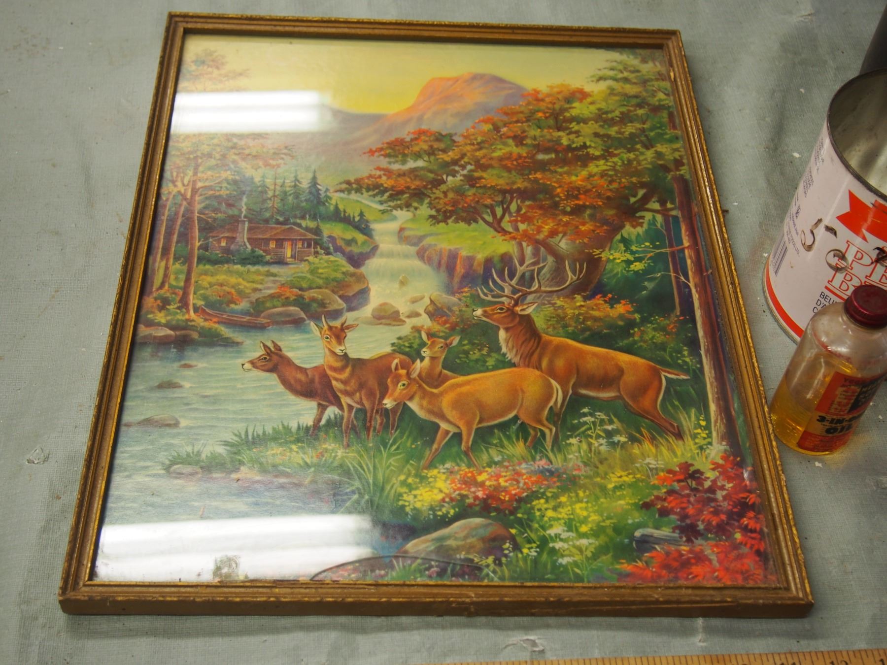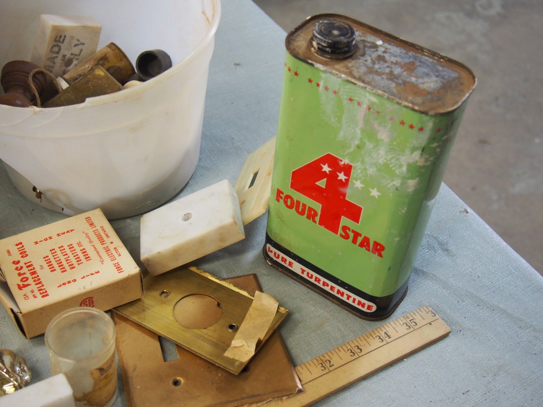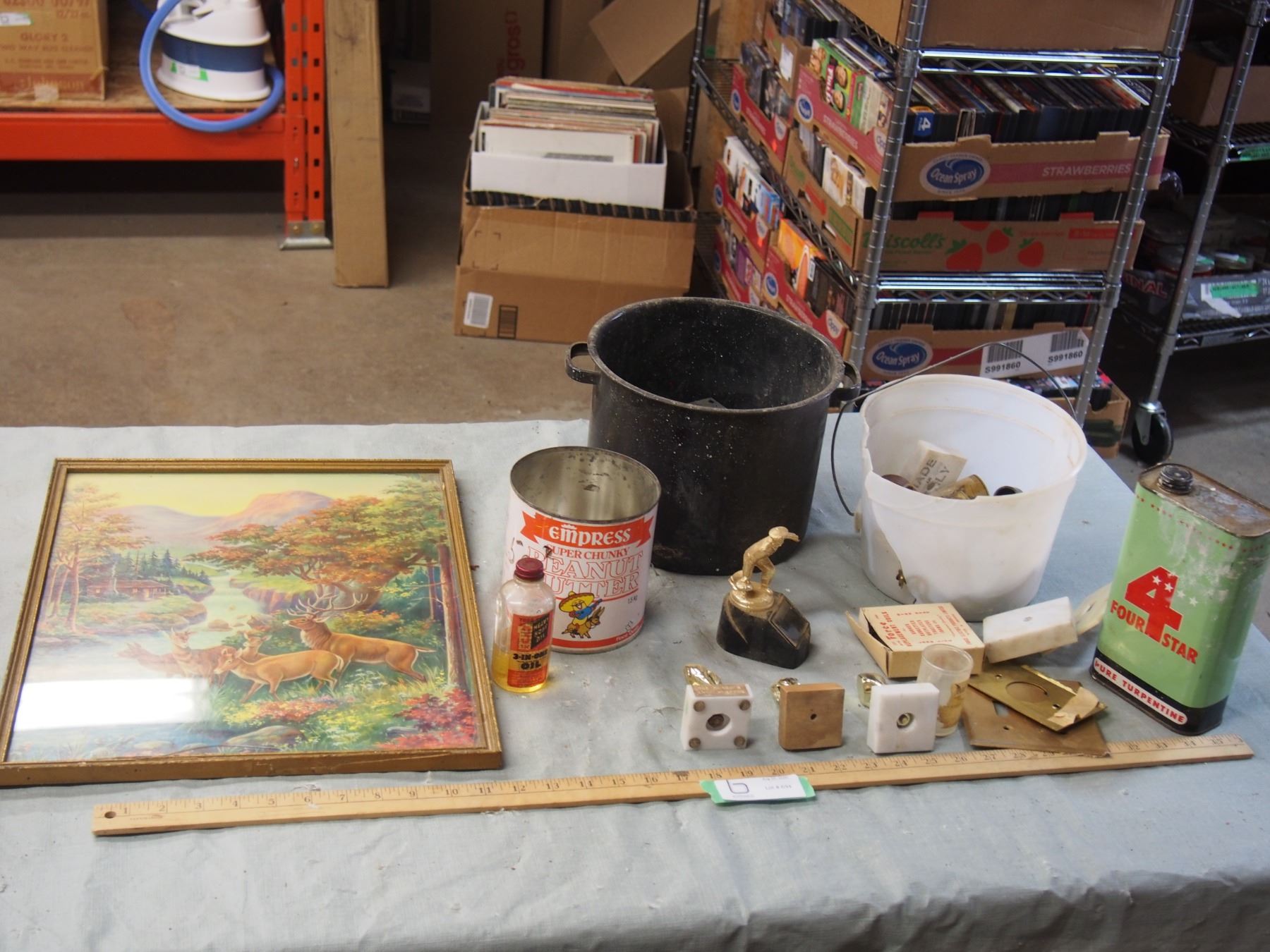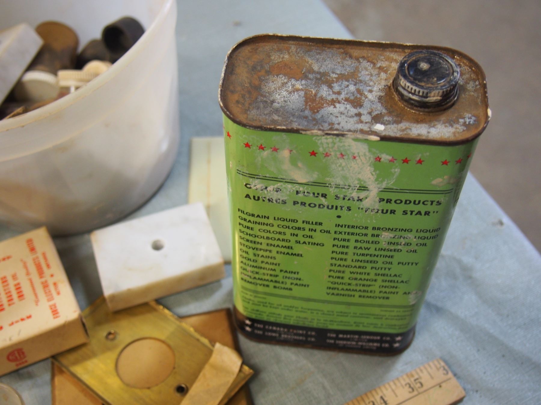 Picture in Frame, 4 Star Turpentine Tin and Misc