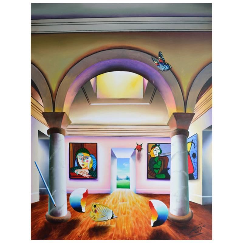 "Picturesque View of Paradise" is an original painting, oil on stretched canvas, by Ferjo. Hand signed by the artist, this piece comes with a letter of authenticity. Measures approx. 40" x 30" (image).