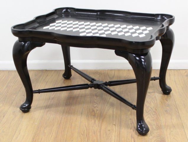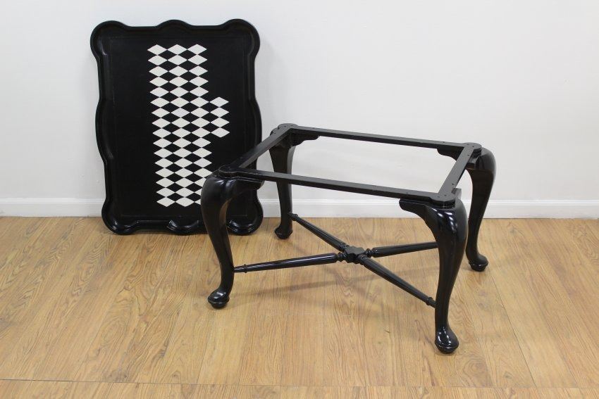 With diamond design. Stretcher base. Approx. 23" H x 35" W x 27" D.