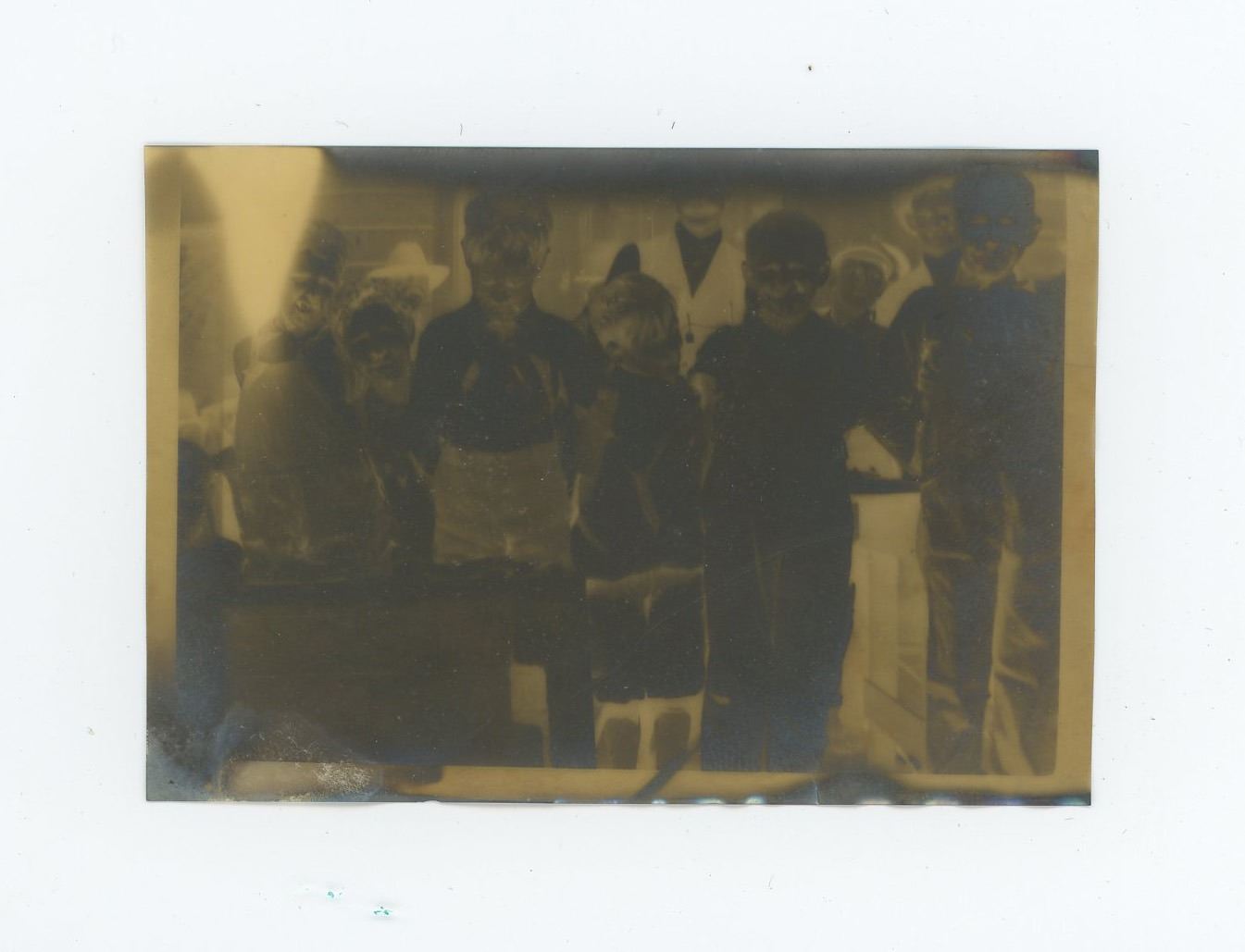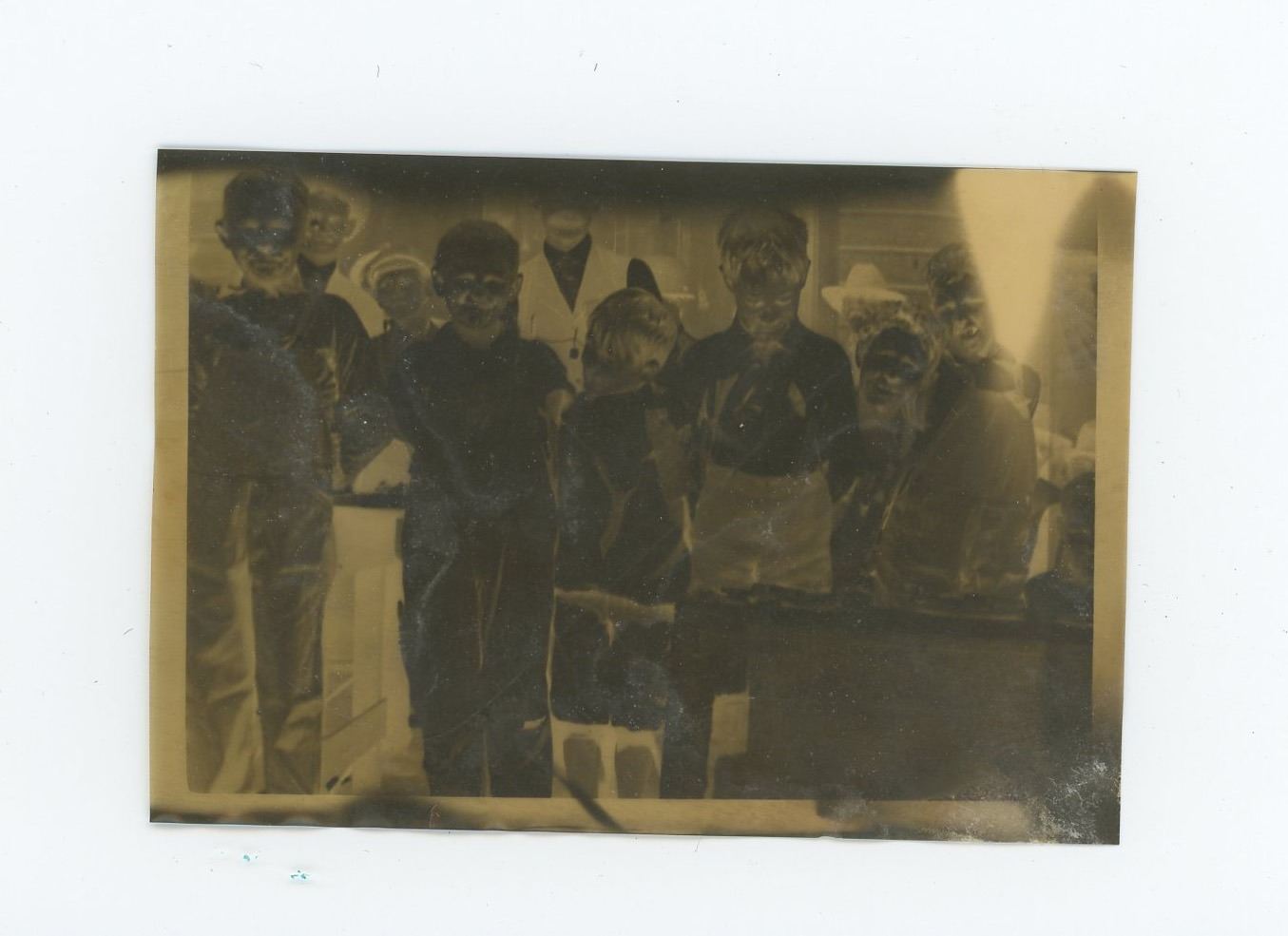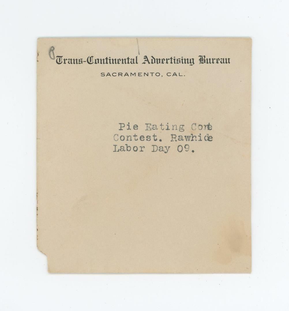 3 3/8" by 2 3/8". In December 1906, prospector Jim Swanson made a discovery of a rich gold and silver deposit in the hills near what became Rawhide. He In December 1906, prospector Jim Swanson made a discovery of a rich gold and silver deposit in the hills near what became Rawhide. He was soon joined by Charles ("Charley") B. Holman and Charles ("Scotty") A. McLeod, who also found sizeable deposits nearby on Hooligan Hill. McLeod had recently been ordered to cease prospecting around the nearby camp of Buckskin, and bitter about this, he suggested the name of Rawhide for the new camp, as a play on the name of the Buckskin camp he held with contempt. Word spread, and both Holman and McLeod sold their claims to investors and moved on to Stingaree Gulch later in 1907, where they found yet another large deposit. The two men sold these claims for even more money, and then left the area to prospect elsewhere. The frenzy that these claims created soon had Rawhide booming. Investors began selling stocks at a frenetic pace, and the town soon had a population of about 5,000, with: three banks, four churches, a school, twelve hotels, twenty-eight restaurants, a theater, and thirty-seven saloons. While the original mines and claims did produce a decent profit in gold and silver, the fever created an amount of activity far in excess of what the mines could support. Stock swindlers like George Graham Rice, a flashy con-artist from Goldfield, plied their trade, creating a sense that Rawhide would be the next Virginia City (or the like of any number of other Nevada boom towns), with untold riches to be had for the savvy folks who would just invest in his companies. Others, like businessman George "Tex" Rickard came to Rawhide to establish legitimate businesses, and make money off the boom while it lasted. Rawhide's hey-day was short-lived; the glaring, gross over-promotion which manipulators performed to inflate the worth of Rawhide doomed its chance for success from the start. In the short span of two years the town went from its peak population of 7,000 people (March to June, 1908), to fewer than 500 people by the latter part of 1910. Helping push the decline of the town even further along was a disastrous fire which swept through Rawhide in September 1908, along with a flood in September 1909, from which many people did not recover or rebuild. While the original mines worked out the last of the gold and silver from the veins first discovered by Swanson, Holman, and McLeod, people began to leave the area, moving to the next "big thing". While there remained a few people eking out a life working in the mines, or processing the ore, or just working their own claims and prospecting, for all intents and purposes the town became a hollow shell of what it once was. The population was 32 in 1940.