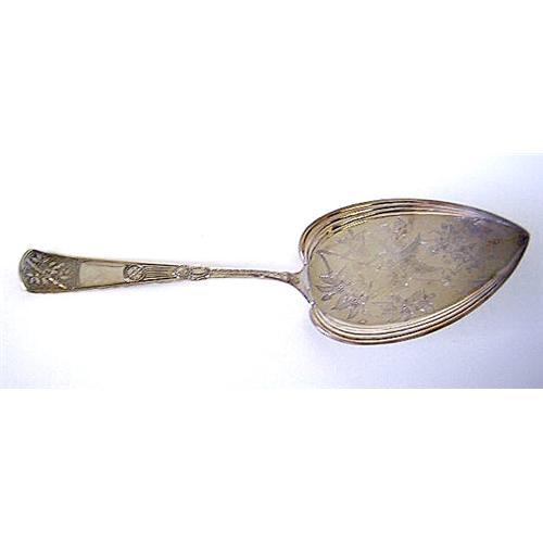 This silverplate pie server is beautifully engraved with a bird ( it could be a Blue Jay) perched on a flowering branch or twig.