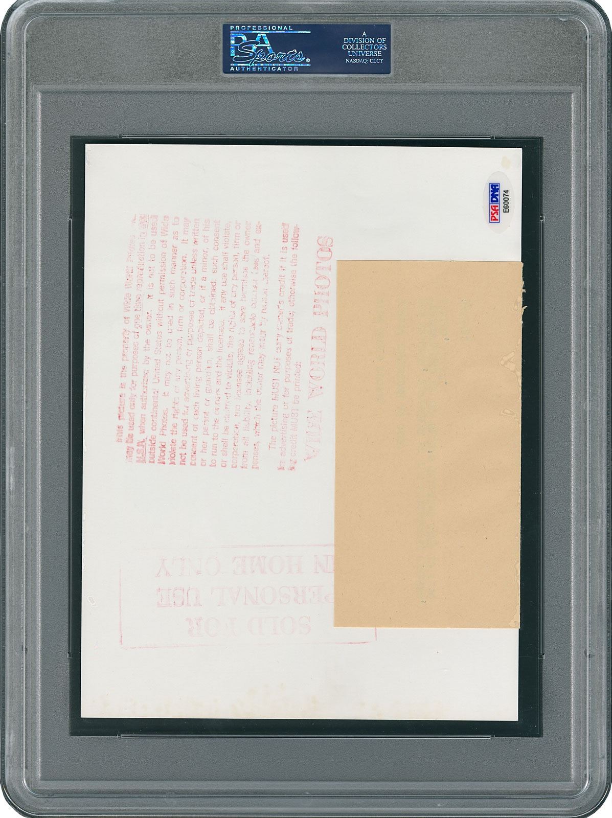 All lots sold by RR Auction are accompanied by an Auction Certificate (“AC”). On any lot presented with an AC issued by RR Auction, the certification is only as to its attribution to the person or entity described or to the lot’s usage and only as explicitly stated therein (the “Certification of Authenticity”), to the exclusion of any other warranties, express or implied, including but not limited to those pursuant to the Uniform Commercial Code. The Certification of Authenticity inures only to the original Bidder (as shown in RR Auction’s records). Bidder may not transfer, assign, or otherwise convey the Certification of Authenticity, and such purported transfer, assignment, or conveyance shall be null and void. The Certification of Authenticity is valid from date of the Auction in which Bidder was awarded the lot (the “Auction Date”) until five (5) years after the Auction Date, without exception.