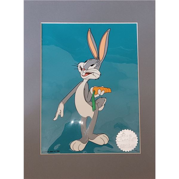 Original Bob Clampett hand-painted animation art cel featuring Bugs Bunny. The 1986 Warner Bros. licensed cel is numbered 168 of 250. It is matted and