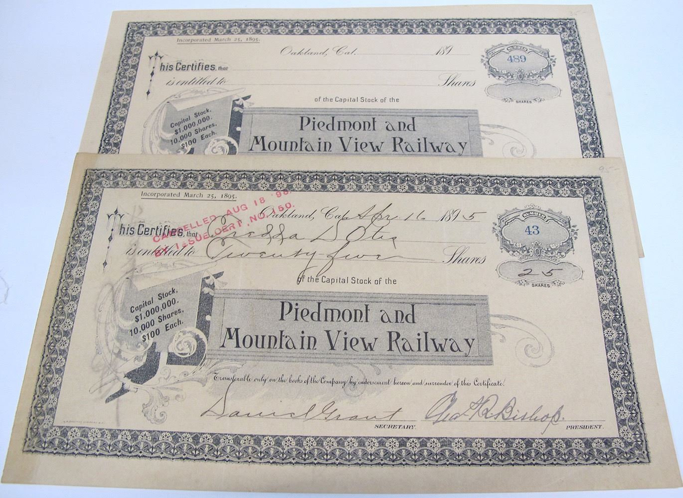 i/c to Credda Otis 1895 #43 25 shares. Unissued #489. Formerly the Piedmont Cable Company. Street railway in Oakland. Date: Location: Oakland, California HWAC # 55731