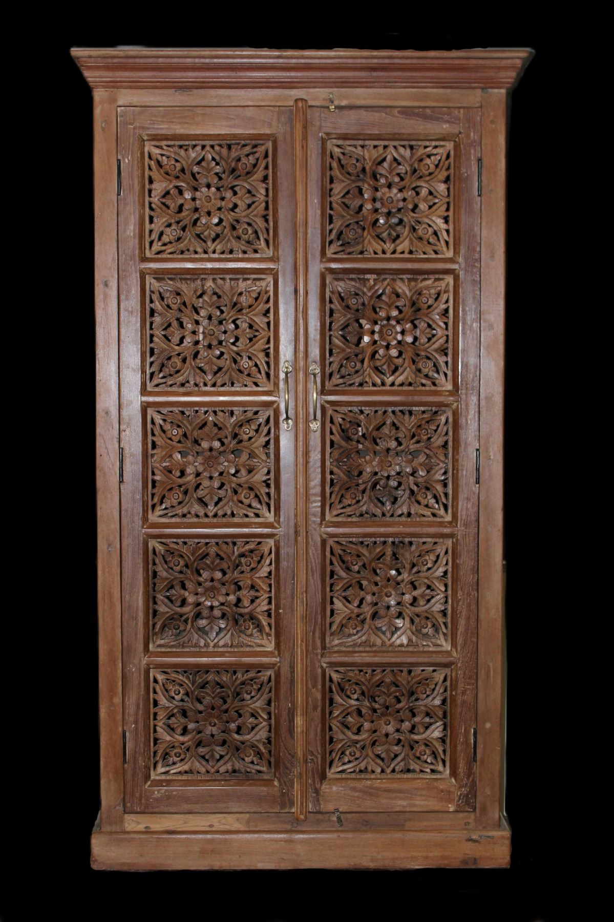 Pierced Carved Cabinet With Shelves- 64" X 32" X 14"- Good Condition