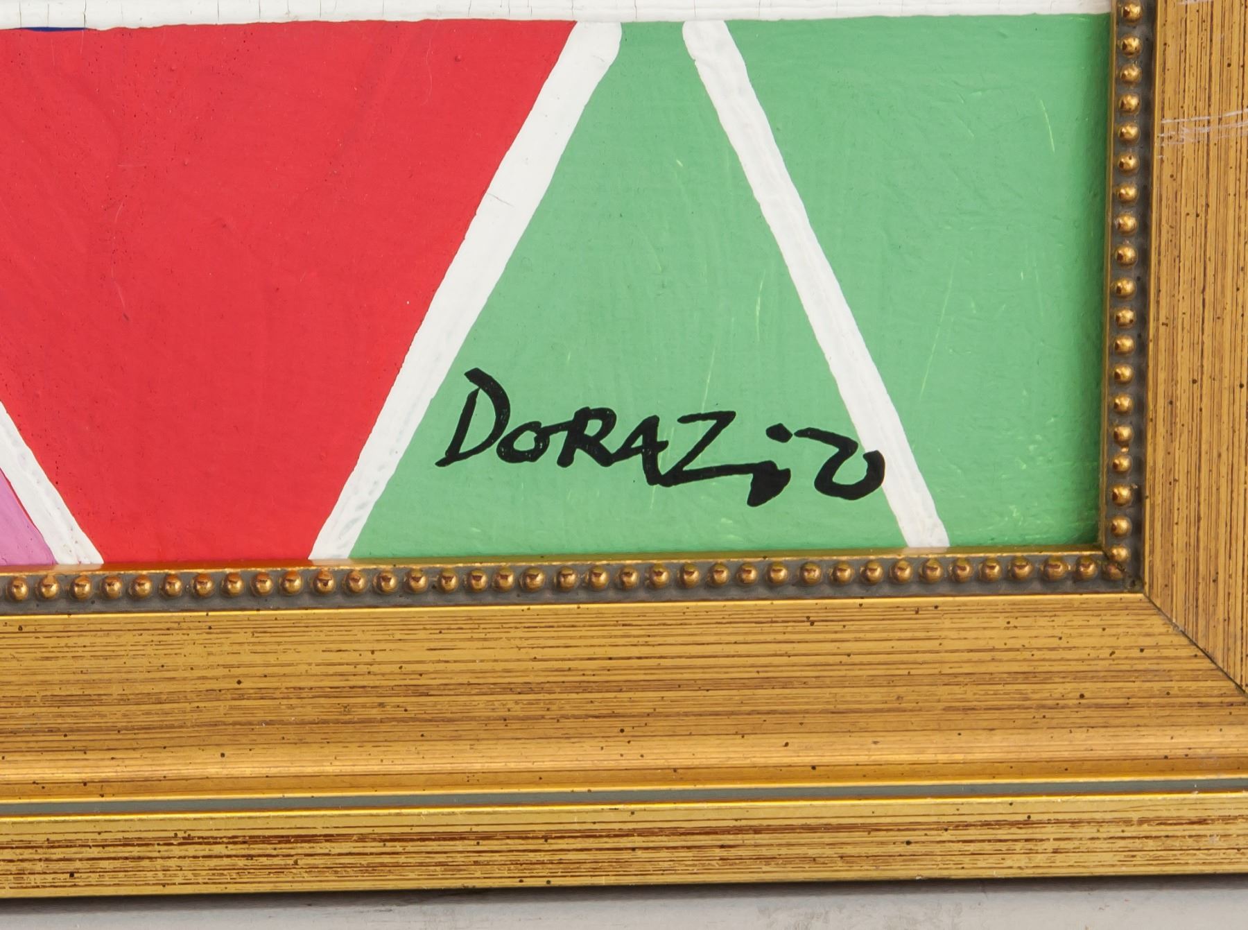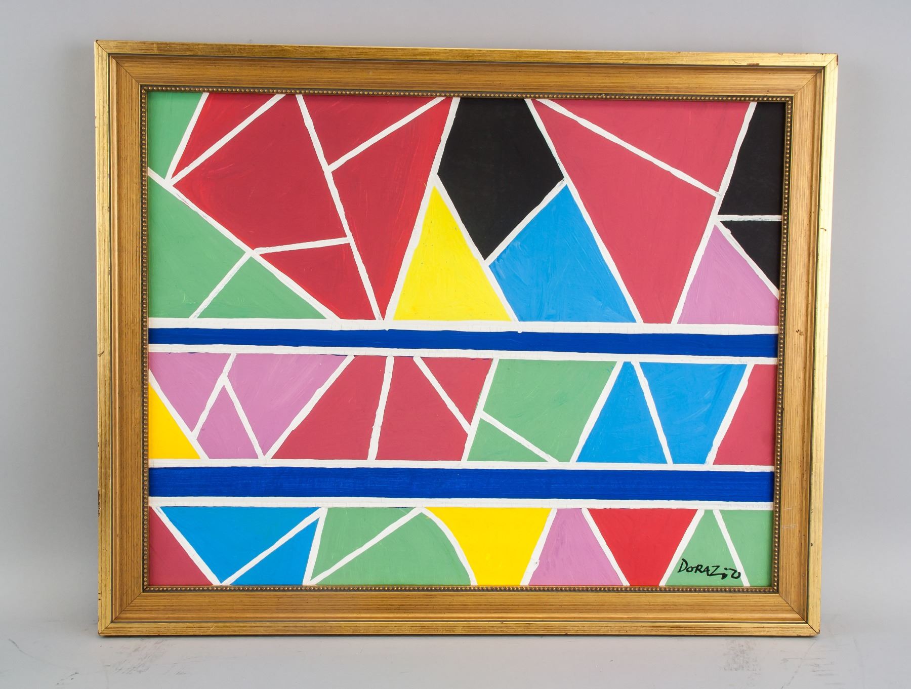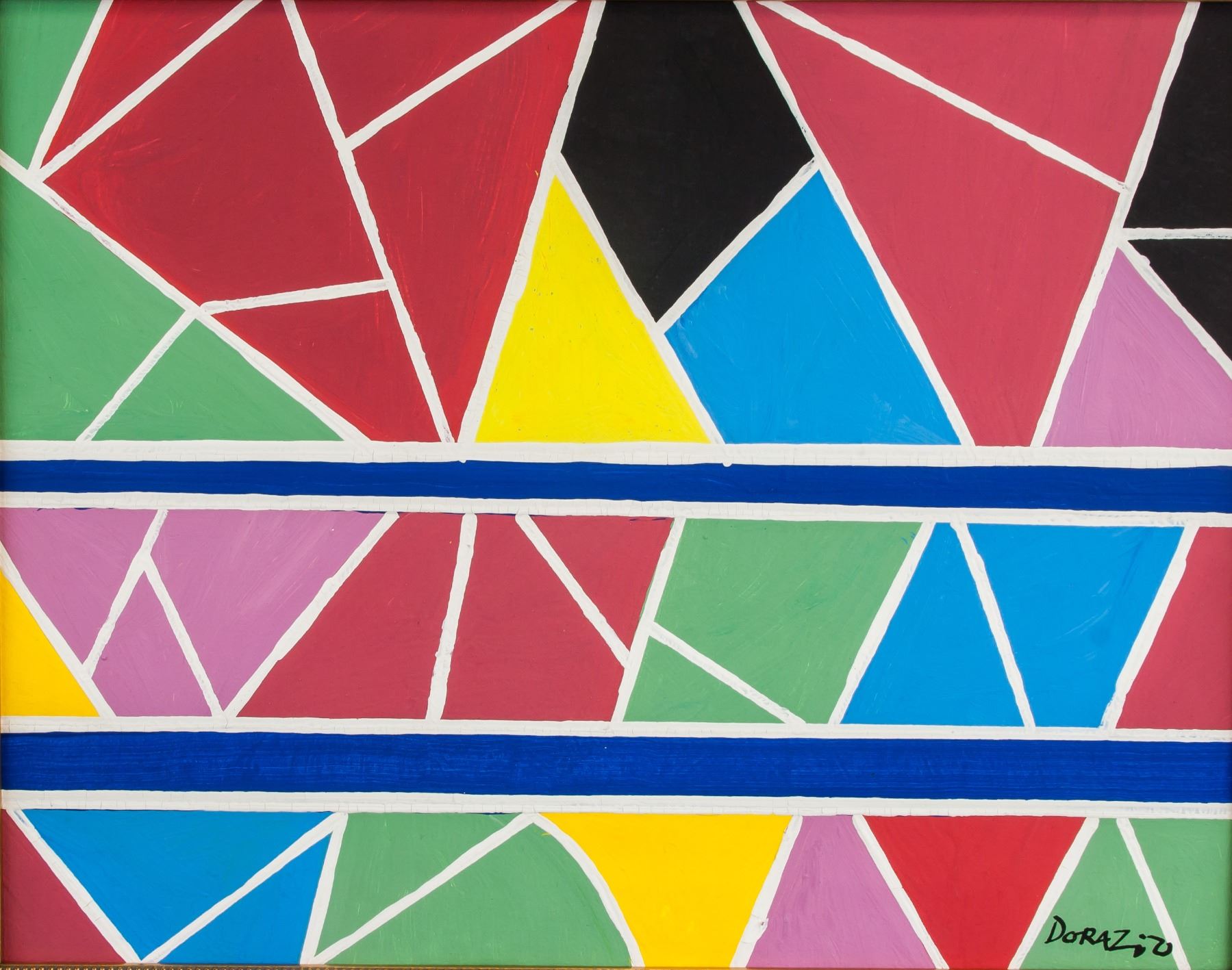Abstract painting of composition; oil on canvas; framed; lower right corner signed and attr. Piero Dorazio (Italian, 1927-2005). Piero Dorazio is known for his gestural, atmospheric paintings of grids crosshatched with fluid brushstrokes and pulsating in color and texture. Born in Rome, Dorazio studied formally in classical painting and drawing, followed by architecture; by the late 1940s, his presence in artistic and literary circles brought about the influence of Russian Suprematism, Constructivism, the School of Paris, Surrealist biomorphism, and most notably, Italian Futurism—Dorazio was highly influenced by Giacomo Ball; 18 inches x 14 inches. PROVENANCE: Southern Ontario estate