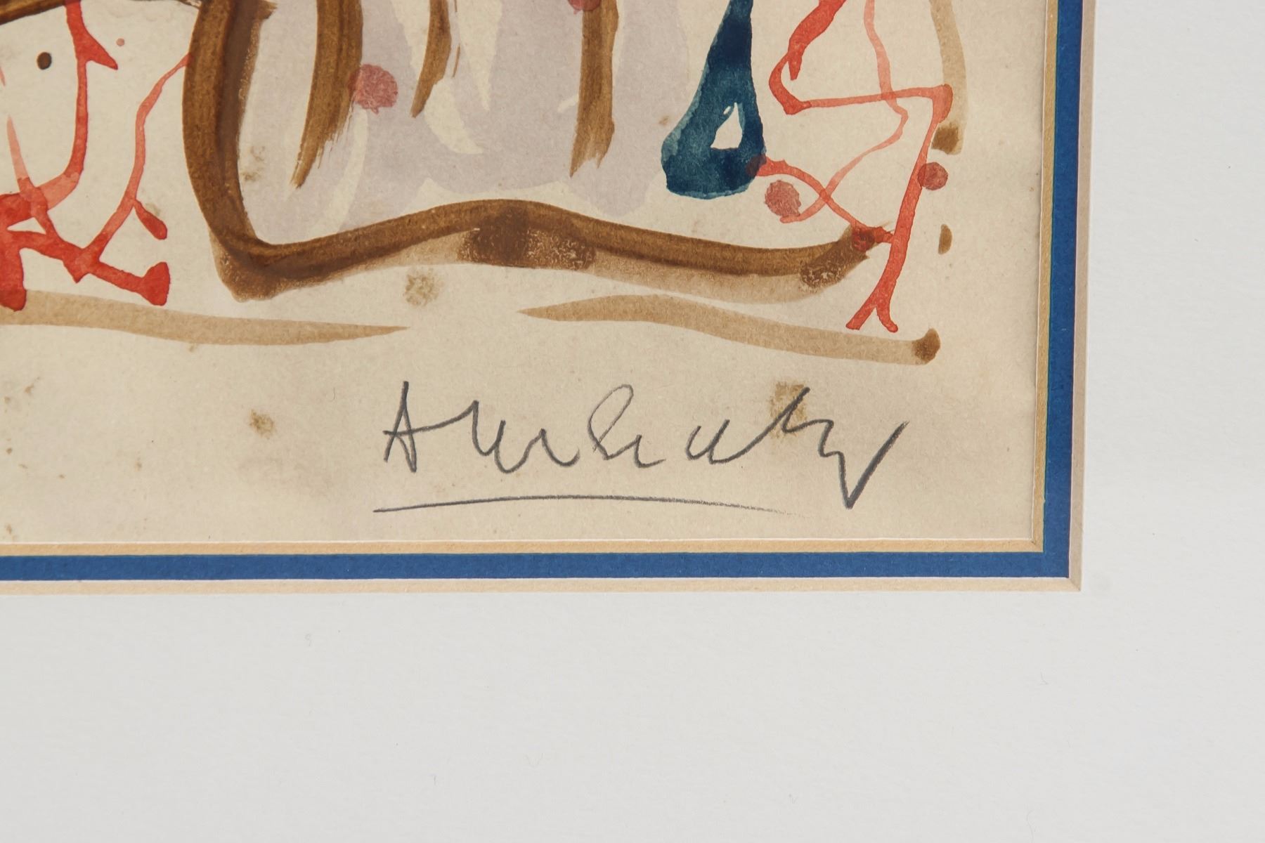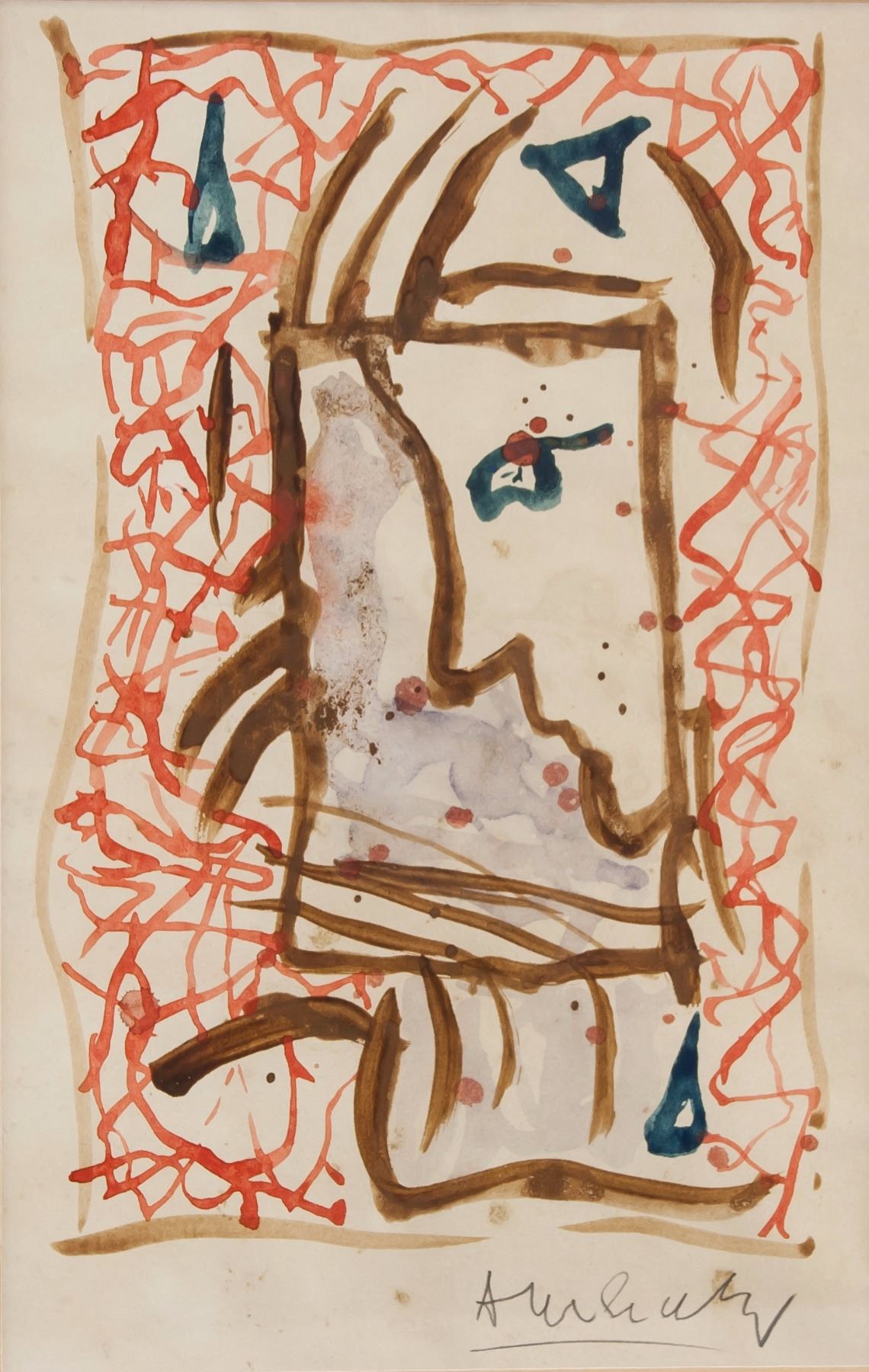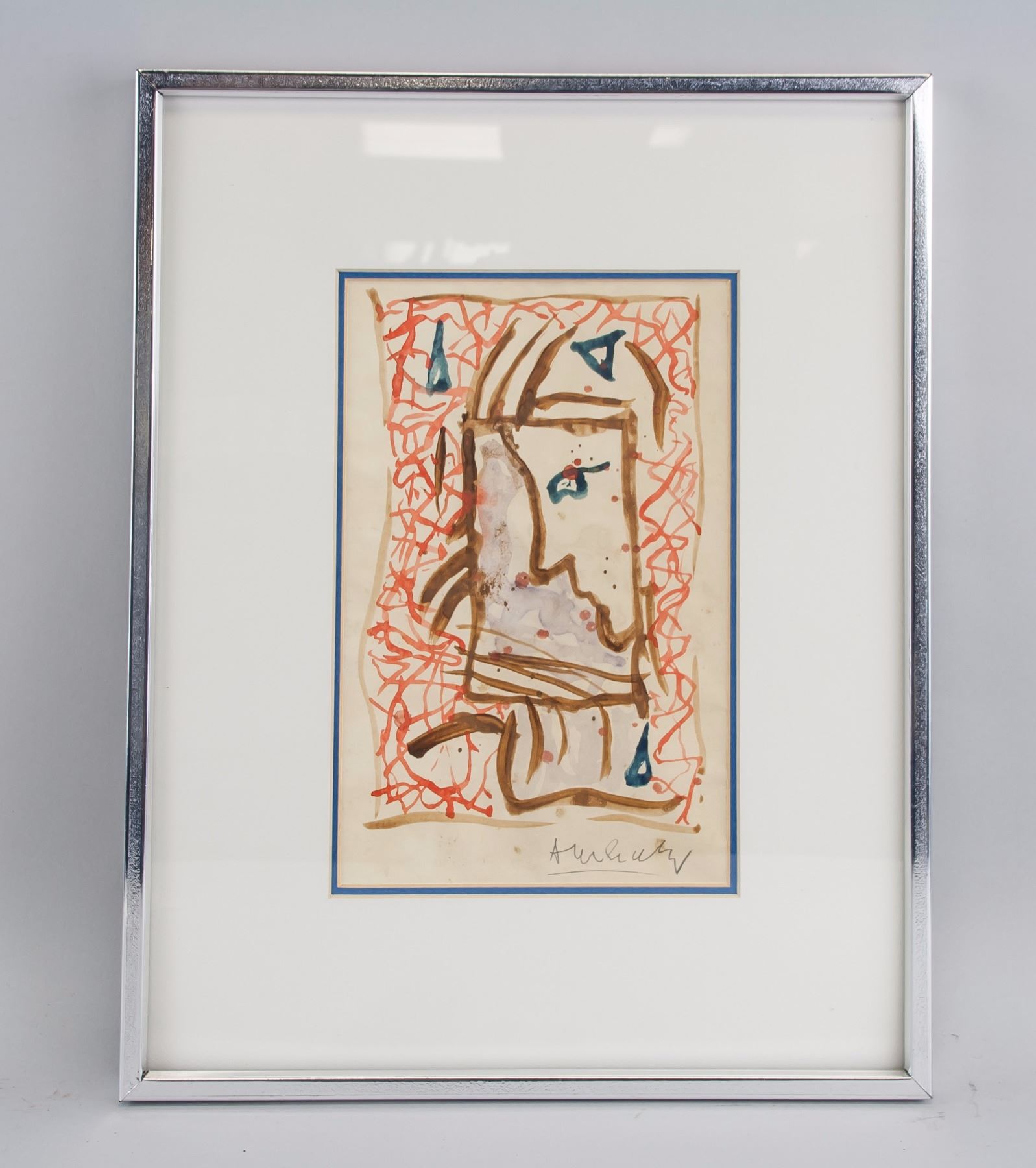 Abstract portrait painting of a lady; watercolour on paper; framed; lower right corner signed and attr. Pierre Alechinsky (b.1927), Belgian tachisme, abstract expressionism and lyrical abstraction artist; 8.5 inches x 5.5 inches. Pierre Alechinsky is a Belgian artist known for his involvement in the avant-garde CoBrA group. Melding medieval illustrations, folk art, and comic-book layouts, many of the artist’s works—including Central Park (1965)—read as mysterious codices. “When I paint, I liberate monsters,” Alechinksy once explained. “They are the manifestations of all the doubts, searches, and groping for meaning and expression which all artists experience. One does not choose the content, one submits to it.” Born on October 19, 1927 in Brussels, Belgium, he moved to Paris after studying at the École Nationale Supérieure d’Architecture et des Arts Décoratifs in his home city. Alongside Karel Appel and Asger Jorn, he helped found the group, basing its principles primarily on the expressive attitude espoused by Jean Dubuffet’s Art Brut. A trip to Japan in 1955 prompted him to incorporate the traditional processes of Japanese calligraphy into his practice. Around this time, the artist also began referencing some of the bizarre imagery found in the work of the Flemish masters Pieter Brueghel and Hieronymus Bosch. Alechinsky was the subject of a retrospective at the Museés Royaux des Beaux-Arts de Belgique in 2007. He currently lives and works in Paris, France. The artist’s works are held in the collections of the Tate Gallery in London, the Museum Ludwig in Cologne, The Museum of Modern Art in New York, and the Royal Museum of Fine Arts of Belgium in Brussels, among others. PROVENANCE: Southern Ontario estate