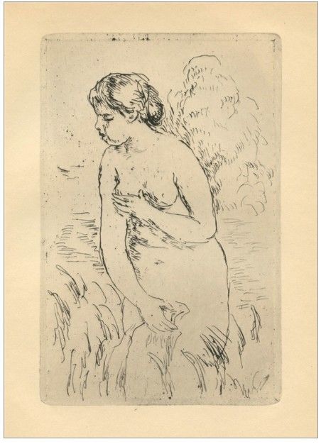 Pierre-Auguste Renoir "Baigneuse Debout, a mi-jambes" original etching - Medium: original etching. Catalogue reference: Delteil 23. This is a lifetime impression published in 1910 for the rare first edition of "Manet & the French Impressionists" by Theodore Duret. Plate size: 6 5/8 x 4 3/8 inches (170 x 112 mm) - Professionally Framed & Matted - Comes With Certificate - -