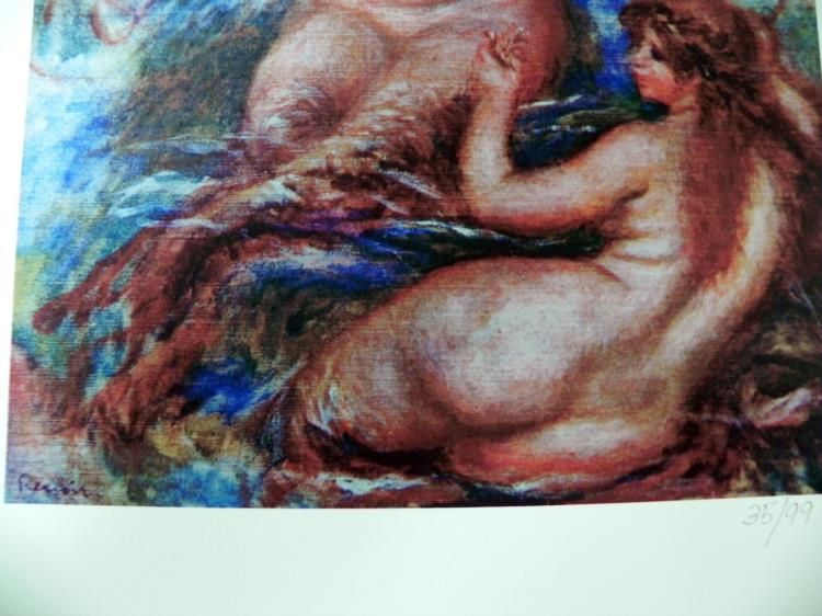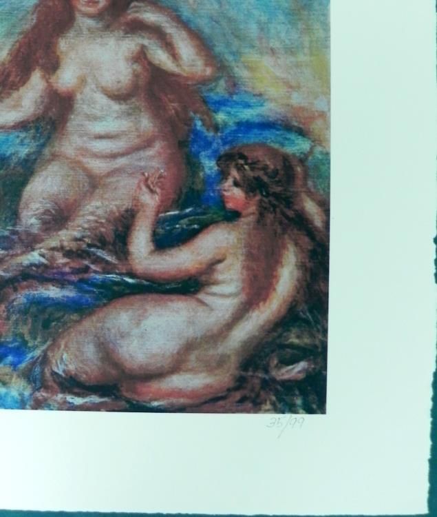Artist: Pierre-Auguste RenoirTitle: Les Sirenes, (After the original Lithograph in 1919)Medium: Giclee on heavy archival paperImage size: 8" x 9 1/2"Paper size: 12 1/2" x 13 1/4", with perforated edgesEdition: 99Condition: ExcellentBiography<span itemscope="" itemtype="http://schema.org/Person">An innovative artist, Pierre-Auguste Renoir was born on February 25, 1841, in Limoges, France. He started out as an apprentice to a porcelain painter and studied drawing in his free time. After years as a struggling painter, Renoir helped launch an artistic movement called Impressionism in 1870s. He eventually became one of the most highly regarded artists of his time. He died in Cagnes-sur-Mer, France, in 1919.*retrieved from: http://www.biography.com/people/pierre-auguste-renoir-20693609#synopsis
