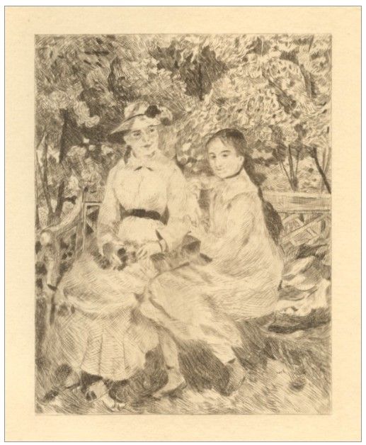 Pierre-Auguste Renoir etching "Portrait" - Medium: etching (after the painting). This beautiful piece was etched by Auguste Lauzet after Renoir, and published in Paris in 1892 by Chamerot et Renouard, for the very rare volume "L'Art Impressionniste", featuring etchings after important in the private collection of M. Durand-Ruel, which was at the time was one of the world's foremost collections of Impressionist art. This print is a fine impression printed on cream laid paper, with a platemark (not shown here in this photo) and good margins; the plate measures 6 x 5 inches - Professionally Framed & Matted - Comes With Certificate - -