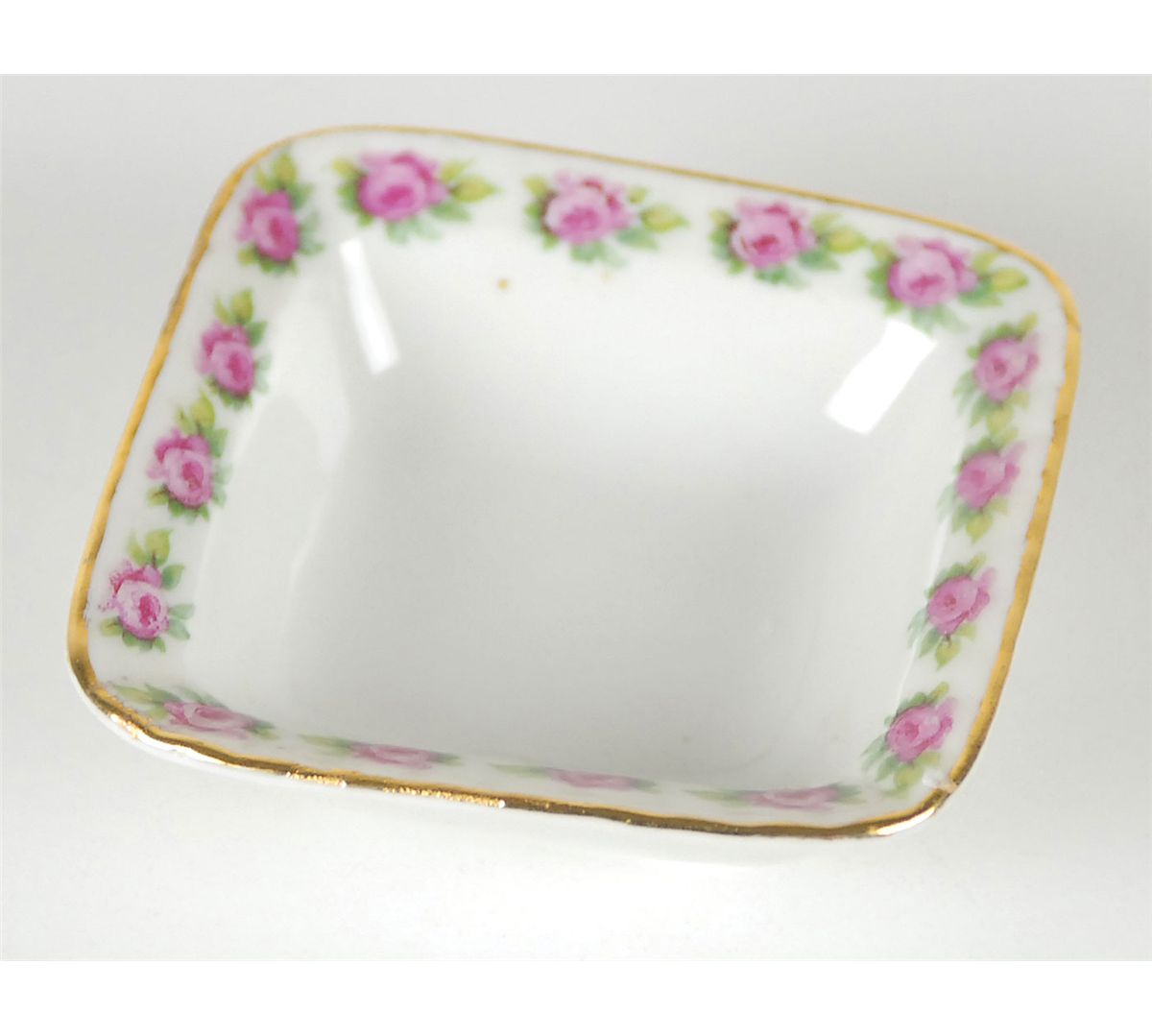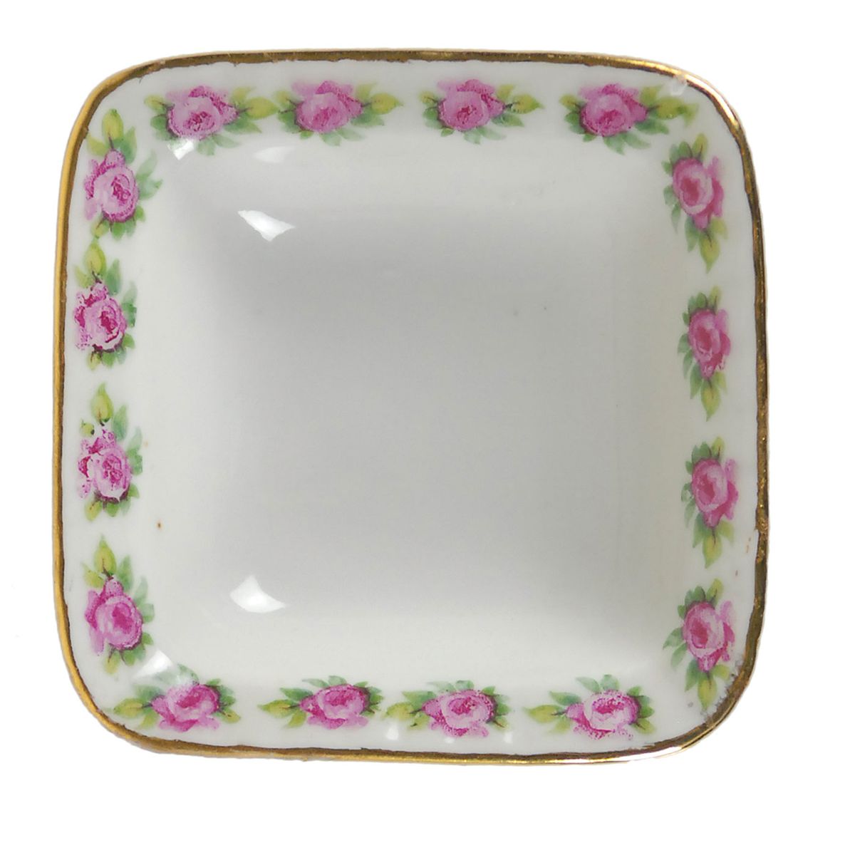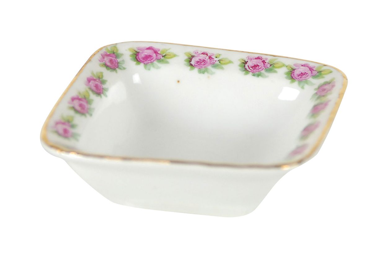 Miniature white porcelain vegetable dish, measuring 2.5 x 2.5 x 1, personally-owned by Renoir as part of a child’s doll dinner service. The plate is beautifully transfer-decorated with lovely pink and green roses in the borders, embellished with gilt accents along the rim. This was originally part of the Pierre Auguste Renoir Personal Artifacts and Archives Collection consigned to Hantman’s in 2005 by Renoir’s grandson, Paul Renoir (1924–2005), son of his youngest child Claude (1901–1969). As part of his inheritance, Claude received Renoir’s home, Les Collettes, in Cagnes-sur-Mer in the south of France.
