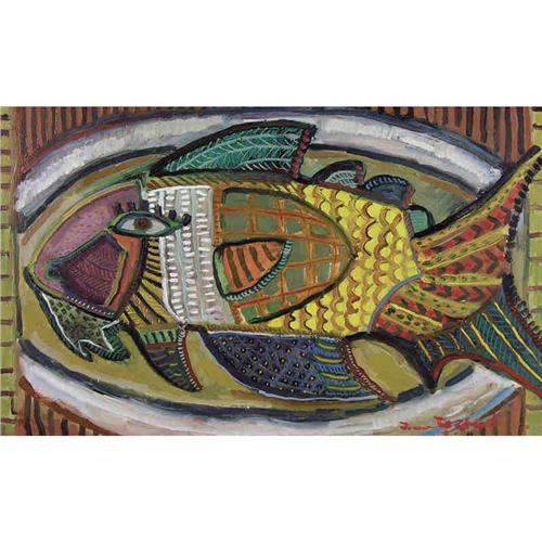 Canadian [b. 1960] DROLE DE POISSON oil on board 16 x 26 in. (40.6 x 66 cm) signed & titled