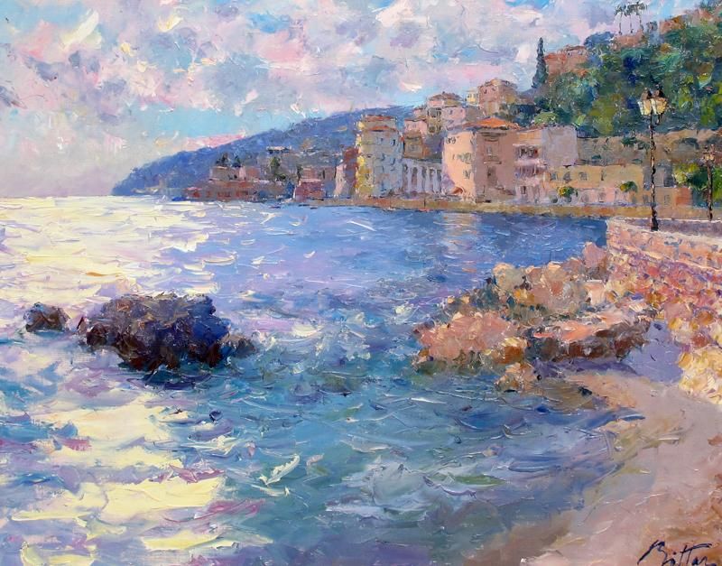 MEDITERRANEAN LANDSCAPE WITH COASTAL TOWN