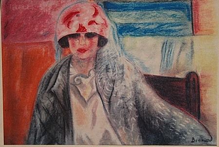 in the manner of Pierre Bonnard "La Femme" pastel on paper circa.1915, private collection Approx. 19x13in. in the manner of Pierre Bonnard was a member of the Symbolist group of painters known as Les Nabis ("prophets" or "seers"), and so subscribed to the Nabi doctrine of abandoning three-dimensional modeling in favor of flat color areas. However, although Bonnard was a member of this group, he was not interested in obscure Symbolist subject matter and was not a mystic. Instead, he was satisfied - even fascinated and delighted by - the scenes of simple daily life around him. Because of this, he has been called an "intimist."