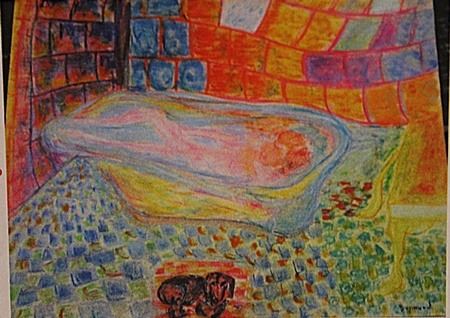 in the manner of Pierre Bonnard "Woman in the Bathtub" pastel on paper circa.1910, private collection Approx. 19x13in. in the manner of Pierre Bonnard was a member of the Symbolist group of painters known as Les Nabis ("prophets" or "seers"), and so subscribed to the Nabi doctrine of abandoning three-dimensional modeling in favor of flat color areas. However, although Bonnard was a member of this group, he was not interested in obscure Symbolist subject matter and was not a mystic. Instead, he was satisfied - even fascinated and delighted by - the scenes of simple daily life around him. Because of this, he has been called an "intimist."
