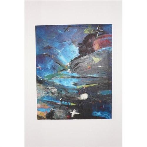60h x 48w inches, acryl/oil on canavas, signed on verso Pierre Bruneau " Grand passage de nuit movementé"