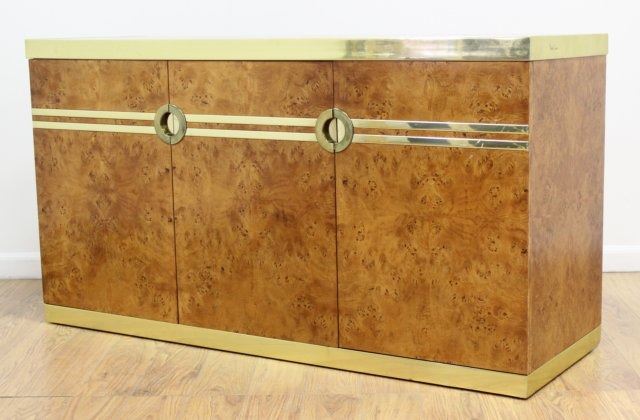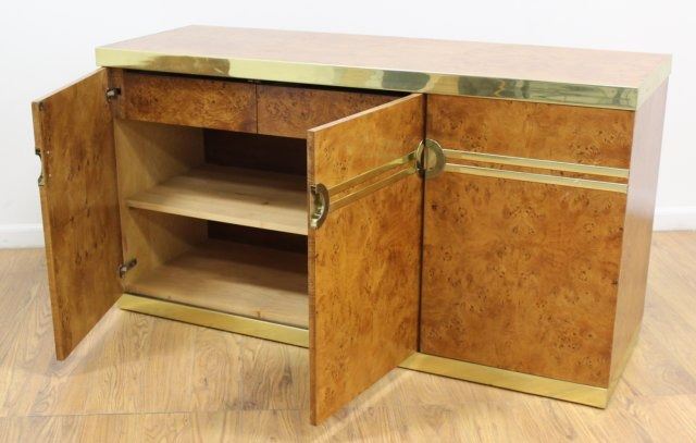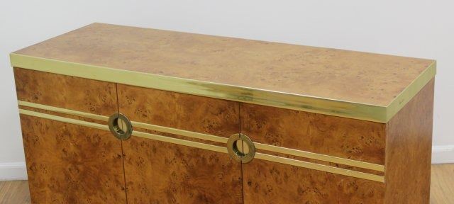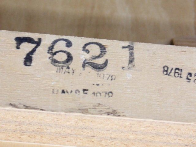 3 doors. 2 drawers interior with shelves. Signed on side and dated on bottom. Approx. 30 1/2" H x 55 1/2" W x 19" D. (6046)