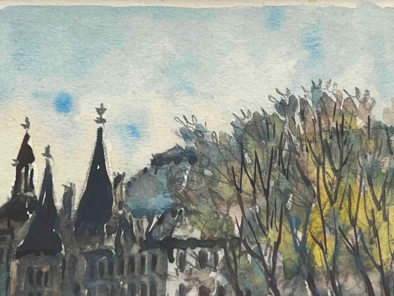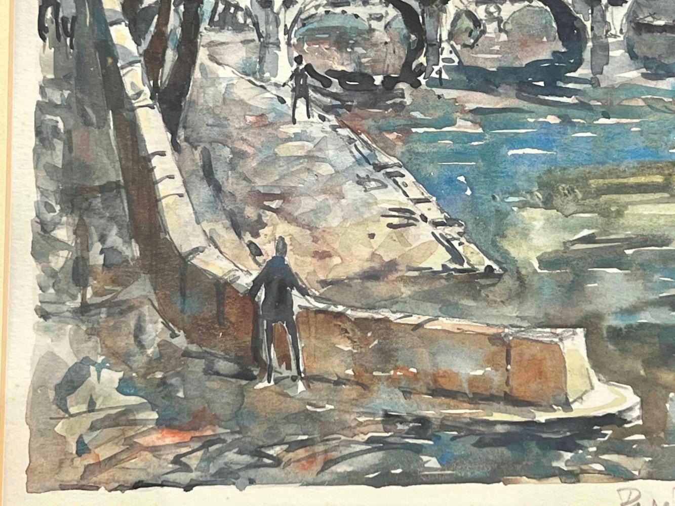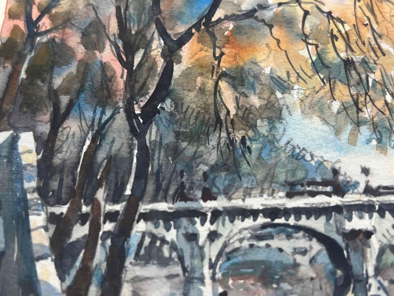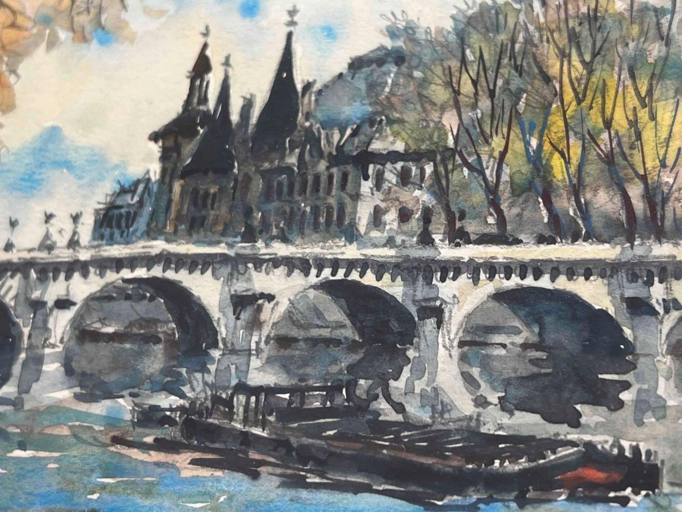 Paris Watercolor Cityscape Painting Titled Paris Le Pont Neuf Et La Seine, Signed P.E. Cambier. Approximately 15.75L x 12.25W in. Sight Approximately 9.0L x 7.5W in.