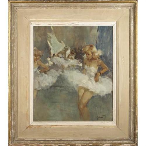 <B>PIERRE GRISOT (French, 1911-1995)</B></I><BR><I>Dancers </B></I><BR>Oil on masonite<BR>22 x 18 inches (55.9 x 45.7 cm)<BR>Signed lower right: <I>Grisot</B></I><BR>