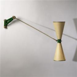 Pierre Guariche adjustable arm lamp Disderot France, 1950s enameled metal, brass, paper shades 52"w x 25"h