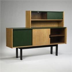 Pierre Guariche sideboard Airborne France, 1950s birch, lacquered steel 75"w x 16.5"d x 56"h